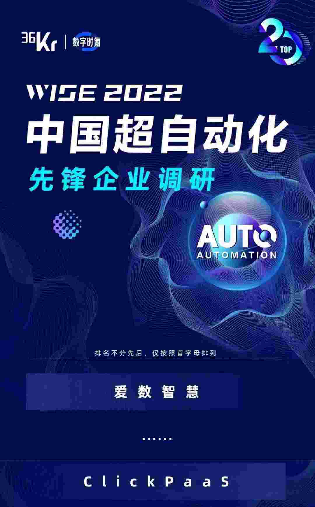 8月10日,,,,由36Kr主办的WISE 2022中国超自动化峰会在杭州成功举办。。钱能钱包作为国内低代码PaaS平台的领军企业,,,,凭借过硬的技术实力和优质的产品能力,,,,在本次峰会中实力入选「2022年中国超自动化先锋企业」20强。。。。